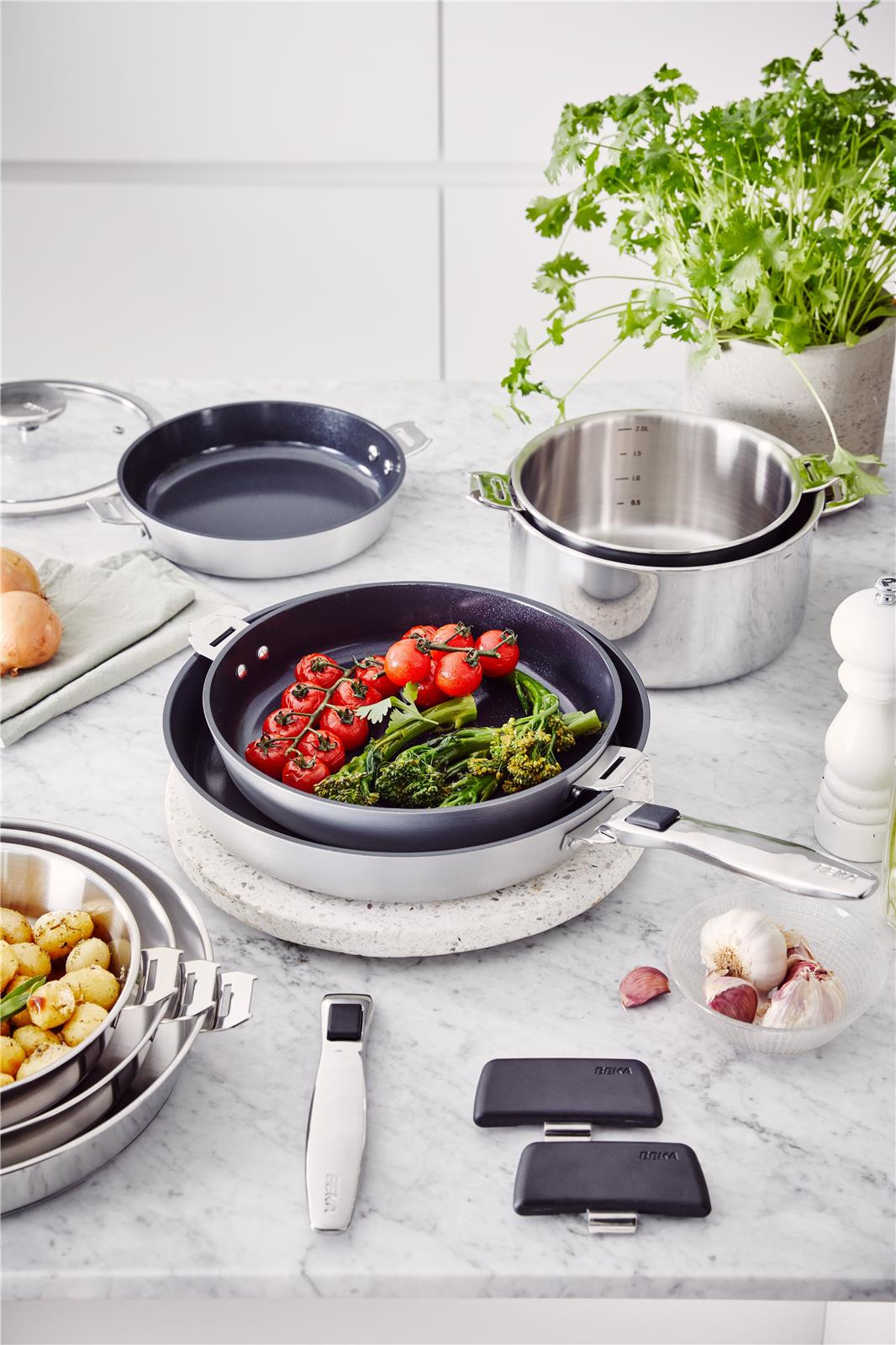 100% sans PFAS • Revêtement en céramique renforcé de titane • Poignées facilement amovibles avec notre système breveté Clickfix • Facile à ranger: gain de place • Différents matériaux: tri-ply / acier inoxydable / aluminium Ces poignées amovibles vous offrent de la commodité et un gain de place.