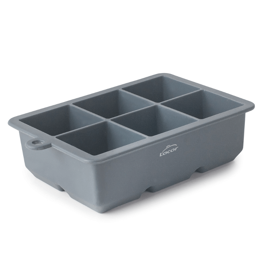 Moule à glaçons XL en silicone Lacor, 6 gros glaçons 4,5 cm, pratique et flexible, idéal pour cocktails, whisky et glaçons aromatisés.