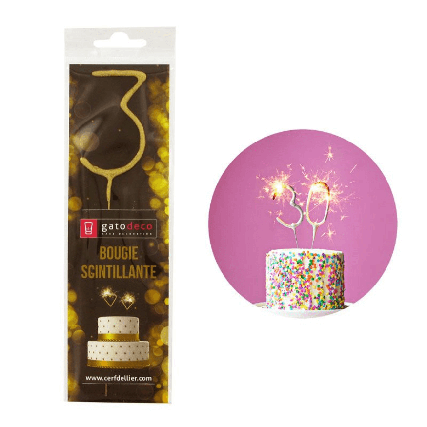 Sublimez vos desserts avec le cierge magique doré chiffre 3 Patisdécor ! Étincelant et spectaculaire, il apporte un effet festif instantané à tous vos anniversaires et célébrations.
