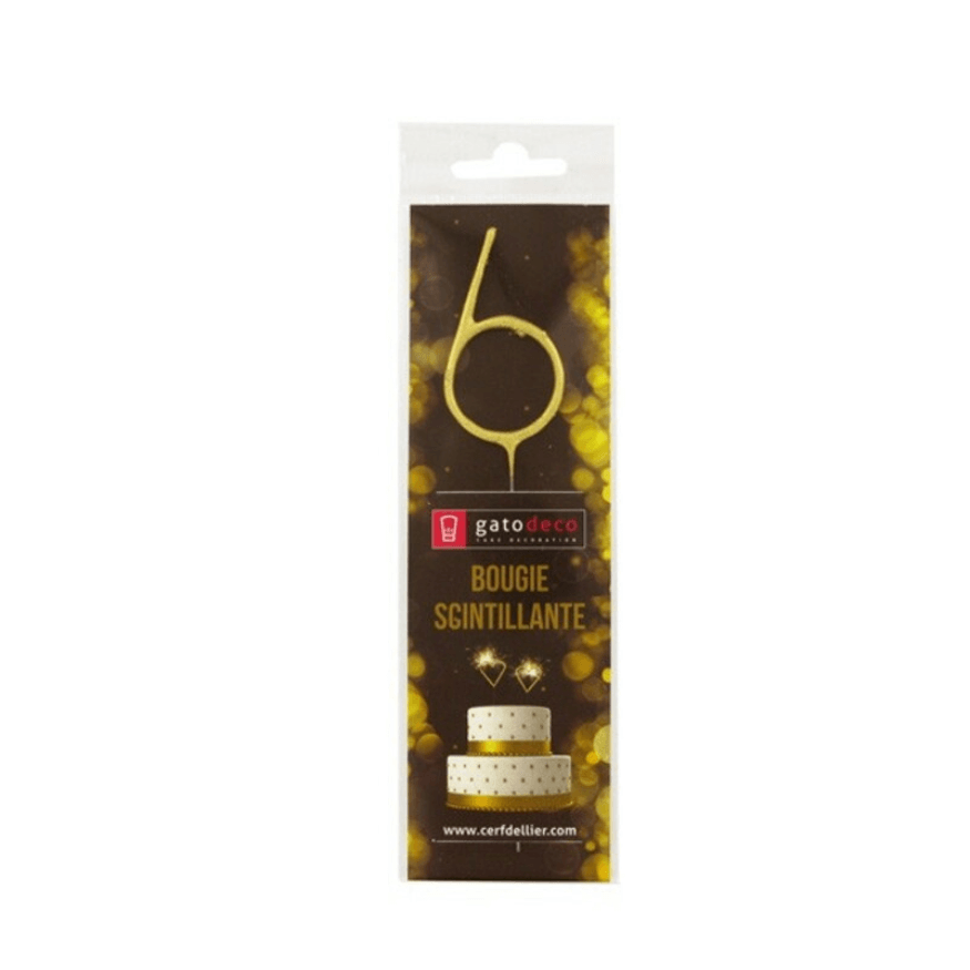 Apportez un effet magique à vos anniversaires avec le cierge magique doré chiffre 6 Patisdécor.