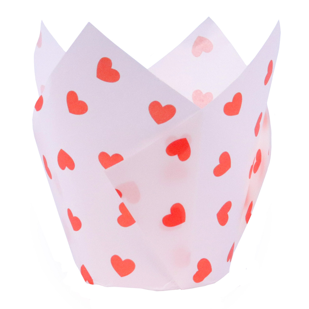 24 caissettes pour muffins et cupcakes en forme de tulipe en papier blanc à coeurs rouges 9 cm - PME