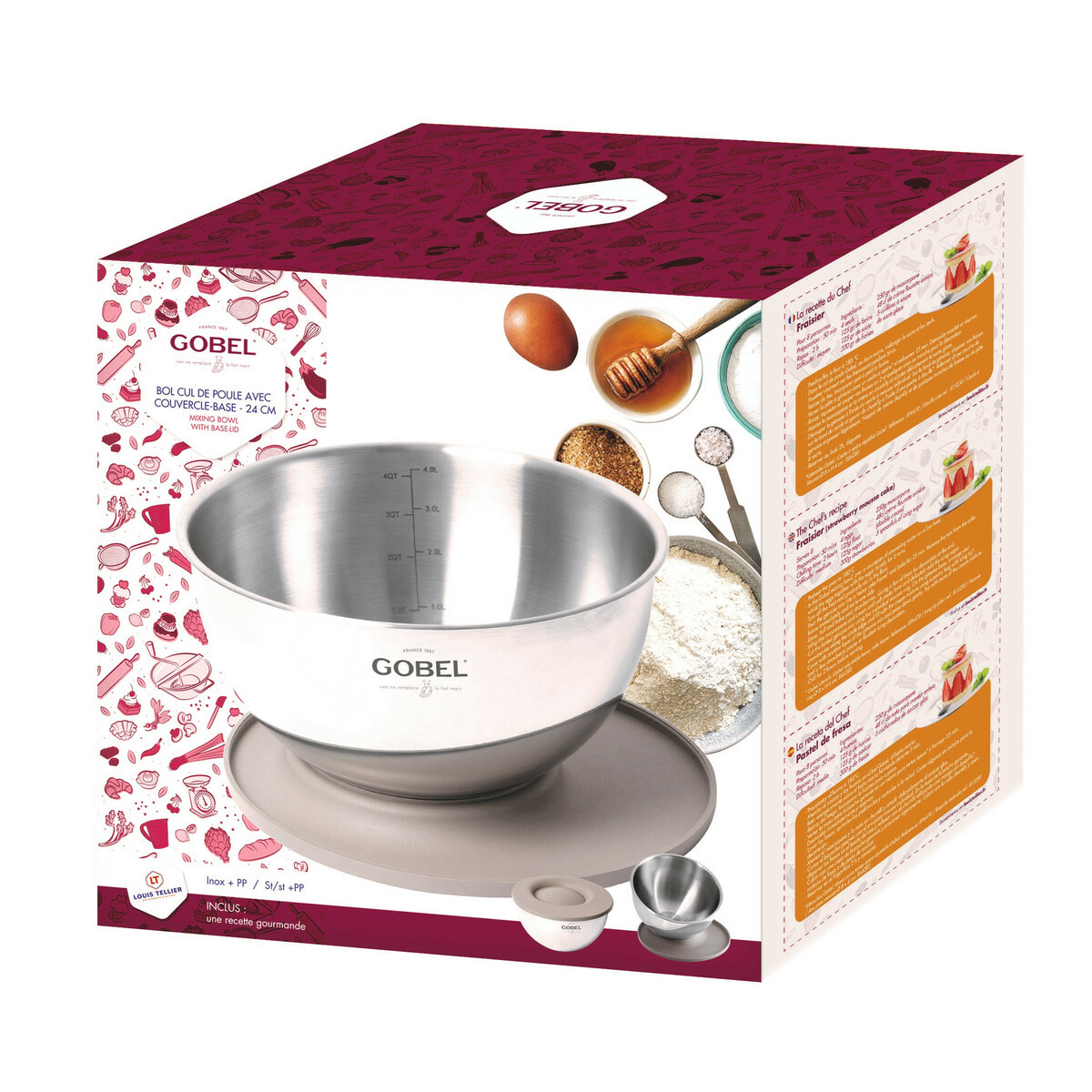 Voici le véritable cul de poule ! L'indispensable des plus grands pâtissiers.D'un diamètre de 24 cm et d'une capacité de 4L, ce bol vous permettra de fouetter, mélanger, préparer toutes vos préparations aussi bien sucrées que salées. Ce bol à la forme demi-sphèrique facilitera le foisonnement de vos préparations. Ainsi, vos préparations seront fouettées de façon homogène et l'incorporation de l'air sera également facilitée. Les plus produits :- Couvercle 2 en 1 : le couvercle sert également de base antidérapante pour le bol afin de garantir une stabilité optimale.- En inox, ce bol s'entretien très facilement (passe au lave-vaisselle) et est résistant. Il peut également passer au congélateur afin d'aider la montée d'une crème chantilly par exemple.- Multi-usage : préparation et conservation- Bol gradué Qu'attendez-vous ? Grâce à cet ustensile de qualité, vous réaliserez des pâtisseries dignes des plus grands chefs, il deviendra votre meilleur allié !