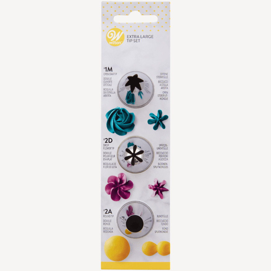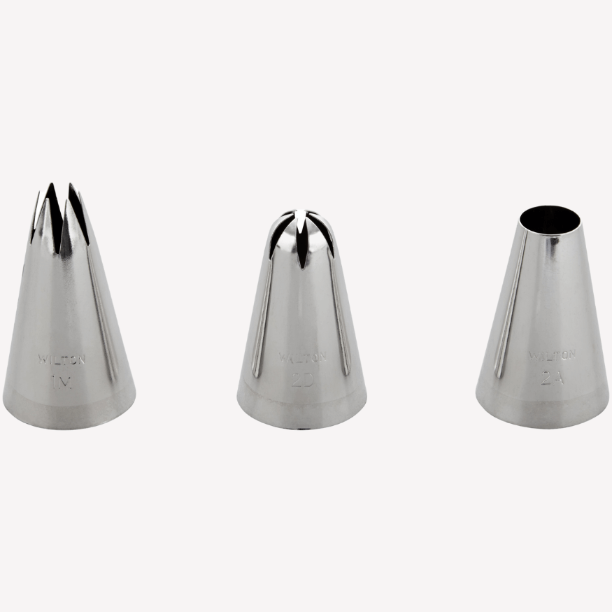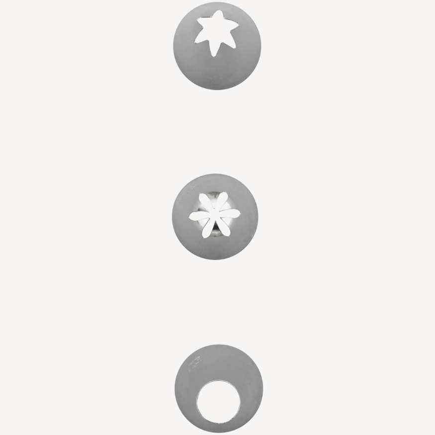 Set de douilles en inox : cannelée étoile #1M, fleur #2D et ronde #2A - Wilton