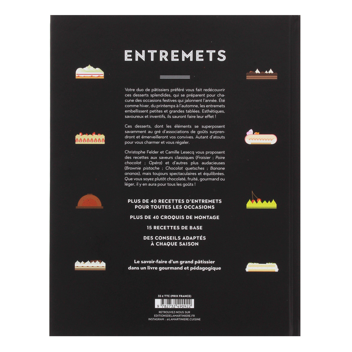Devenez un pro d’un incontournable de la pâtisserie avec le livre Entremets aux éditions La Martinière de Christophe Felder et Camille Lesecq. Christophe Felder, ancien chef pâtissier du Crillon s’associe dans ce livre de pâtisserie avec Camille Lesecq, ancien chef pâtissier du Meurice avec qui il a fondé Les Pâtissiers. A travers un livre pratique regroupant 50 recettes, redécouvrez des desserts splendides pour célébrer des instants gourmands à tout moment de l’année : été comme hiver, du printemps à l’automne. Les conseils sont adaptés à chaque saison, complétés par plus de 40 croquis de montage pas à pas en 224 pages. Emerveillez vos convives et surprenez par l’esthétisme, la créativité et le goût des recettes partagées : de saveurs classiques (Fraisier, ¨Poire chocolat, Opéra) et d’autres plus audacieuses (Brownie pistache, Chocolat quetsches, Banane ananas).