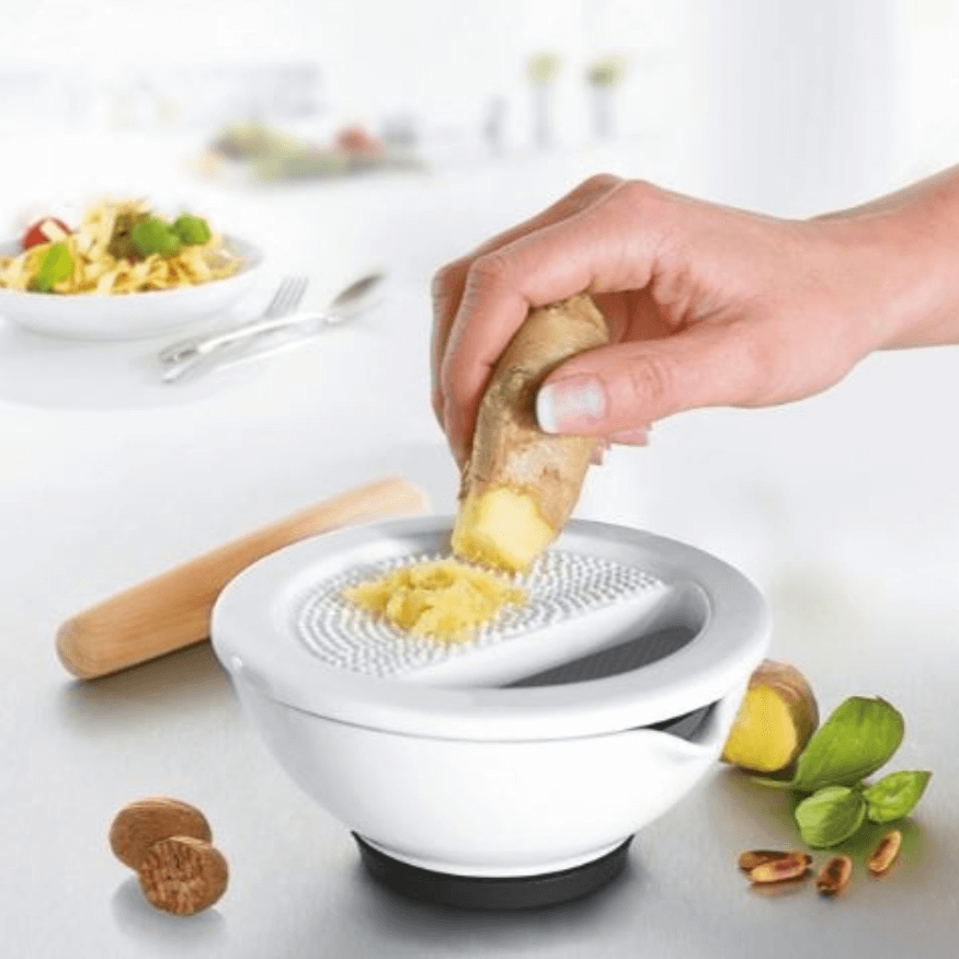 Polyvalent : idéal pour poivre, noix de muscade, gingembre, ail ou herbes fraîches.