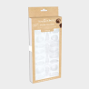 CompositionMatière : PS apte au contact alimentaire. Dimensions : 27,5 x 13,5 x 2,4 cm Dimensions empreintes : de 0,6 à 0,8cm d'épaisseur