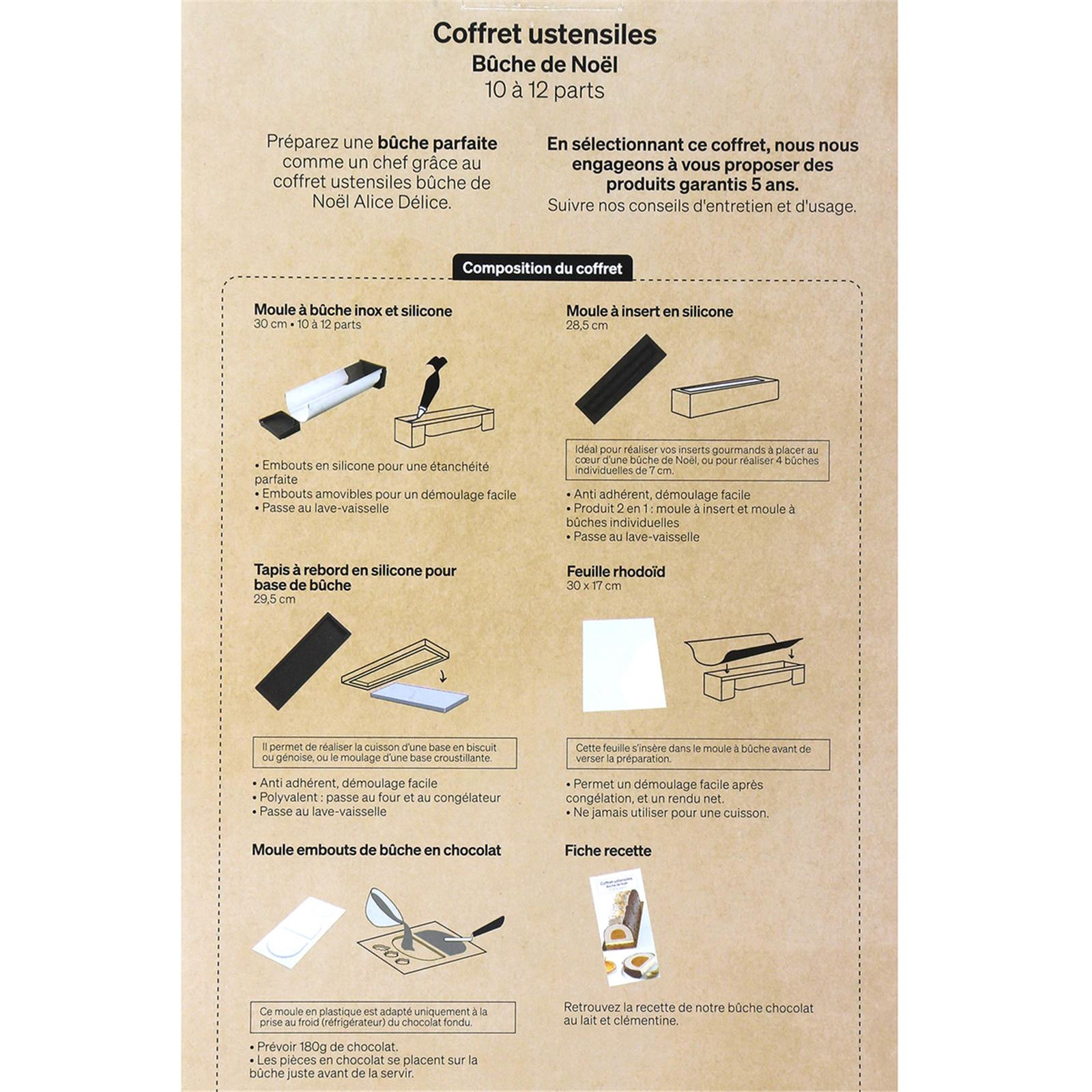 Réalisez votre bûche de Noël maison avec le kit complet Alice Délice : moules, inserts, décorations et recette incluse. Facile, rapide et festif !