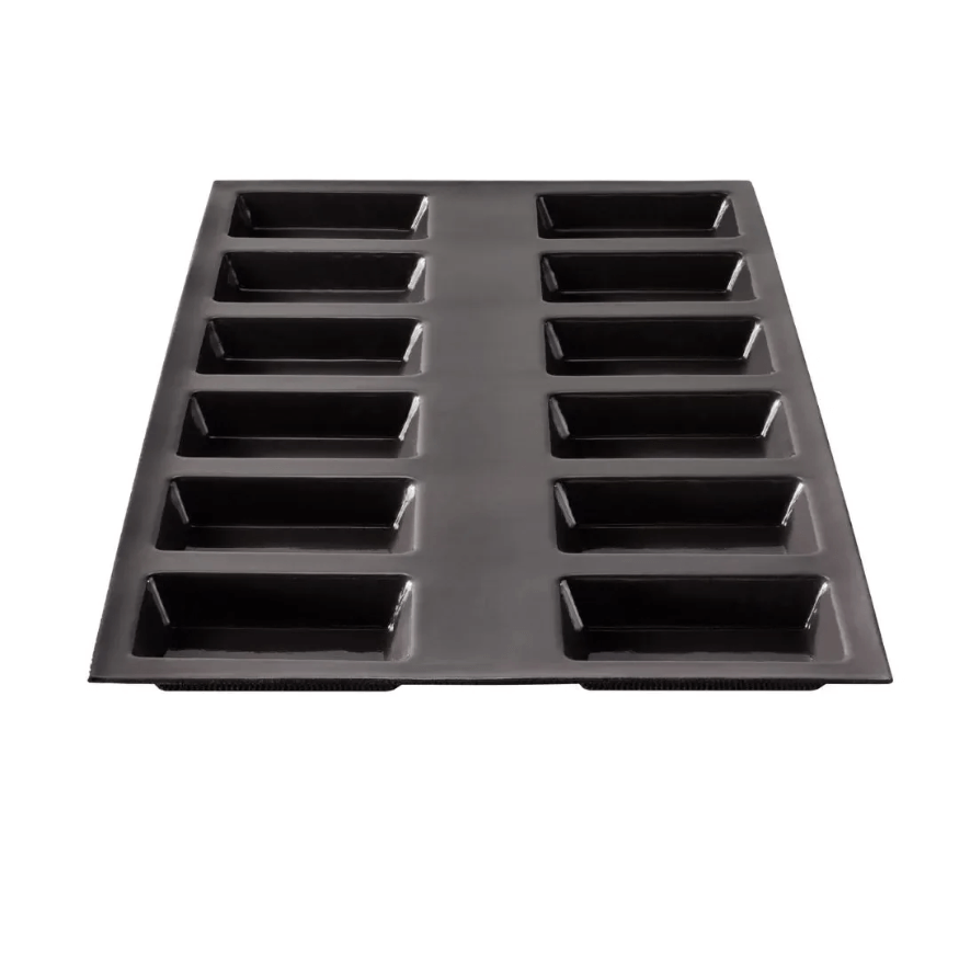 Moule 12 financiers Flexipan : en silicone & tricot de verre, anti‑adhésif, cuisson homogène, démoulage facile. Fabriqué en France, supporte –40 °C à +300 °C. Idéal pour financiers moelleux maison.
