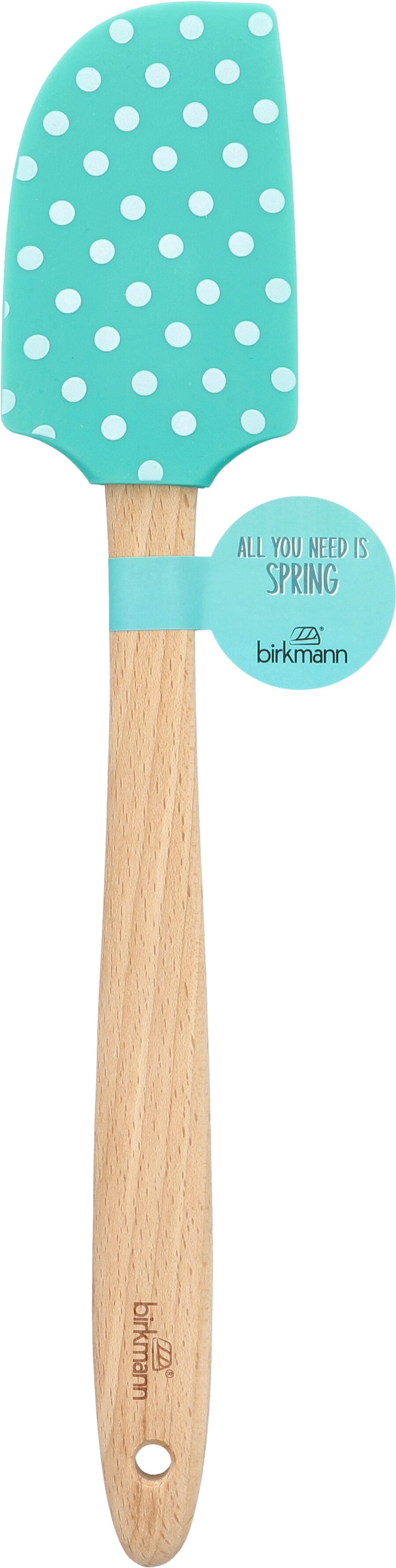 La spatule bleu turquoise à pois avec manche en bois 32,5 cm – Birkmann allie style et praticité pour toutes vos préparations culinaires.