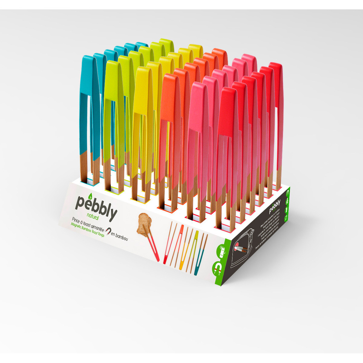 Tellement pratique à l"heure du petit-déjeuner, craquez pour la pince à toast aimantée de Pebbly !Original et colorée, cette pince de24 cm permet de sortir vos tranches de pain de mie ou de baguette du grille pain sans vous brûler ! Contrairement à un ustensile en plastique, ce produit fait de bambou est facile d'entretien.Il a également pour avantage de ne pas fondre et ainsi, de garantir une robustesse à toute épreuve.Pratique, son aimant permet de le fixer sur un frigo pour ne jamais le perdre et assurer aussi un gain de place appréciable ! Accompagnez vos tartines de beurre et de confiture par une tranche de brioche au beurre maison nappée de pâte à tartiner au caramel, miam ! La journée ne peut que bien démarrer !