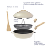 La poêle La Fabuleuse Cookut 28 cm Meringue est conçue pour remplacer 8 ustensiles en un seul. Sans PFAS, elle assure une cuisson saine et respectueuse de l’environnement. Son coloris doux et moderne s’intègre parfaitement dans votre cuisine.