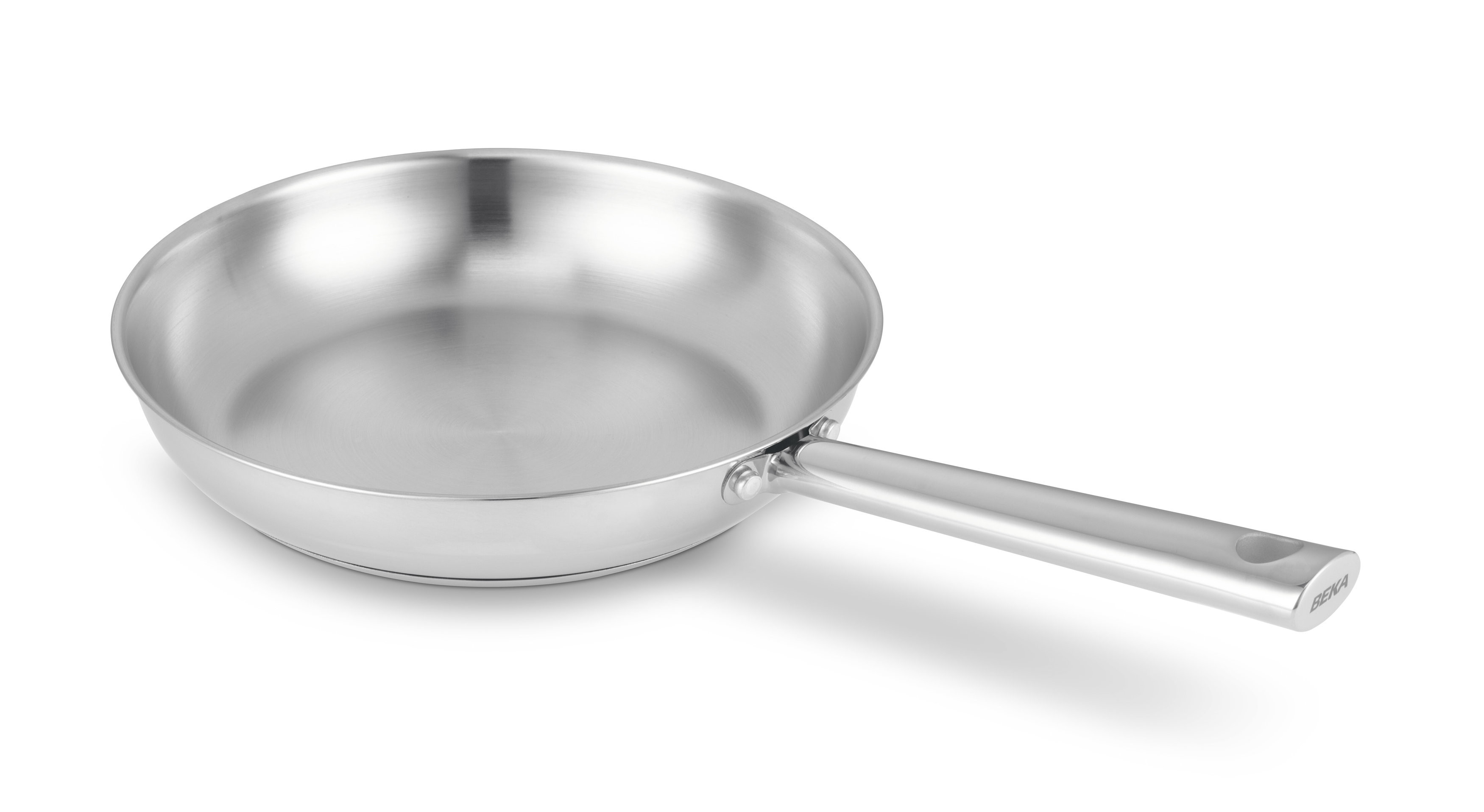 Poêle inox 24 cm – Beka Cicla : fond thermoradiant 4,3 mm, intérieur mat, compatible tous feux, induction et four. Idéale pour saisir, cuire et réchauffer vos plats de manière saine et uniforme.