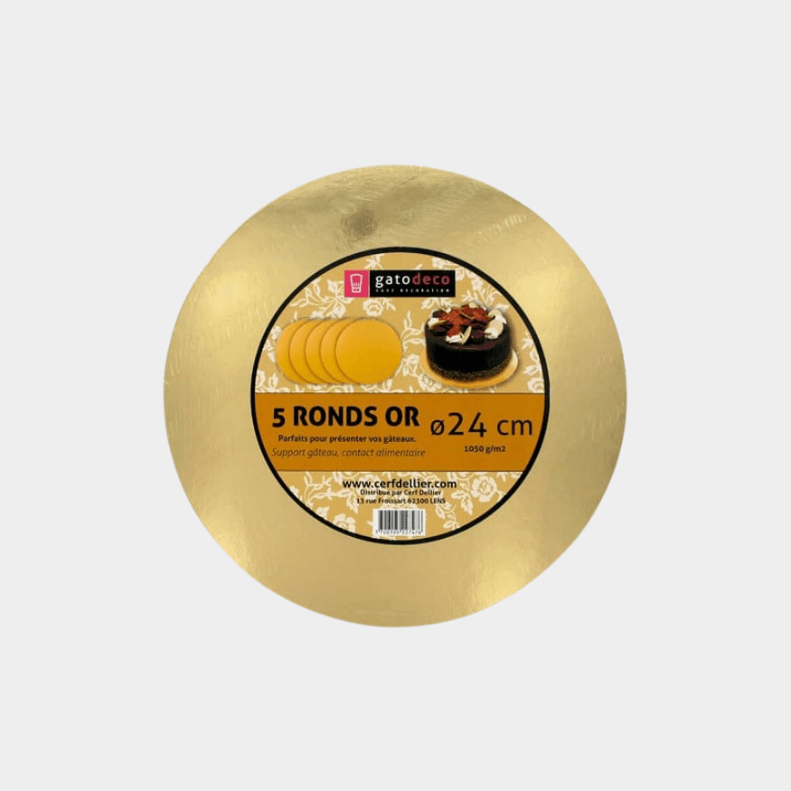 5 supports à gâteaux ronds dorés 24 cm - Gatodeco