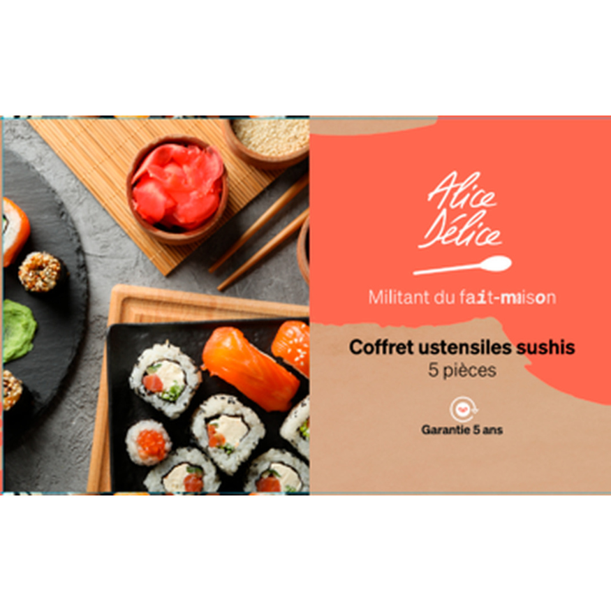 Vous rêvez de préparer de véritables sushis maison ? Le Coffret ustensiles sushis - Alice Délice est l’allié indispensable pour entrer dans l’univers raffiné de la cuisine japonaise et épater vos invités lors de votre prochain repas à la maison. Spécialiste reconnu pour la qualité de ses produits, Alice Délice met tout son savoir-faire à votre service avec ce coffret unique qui sublime l’art de la table.