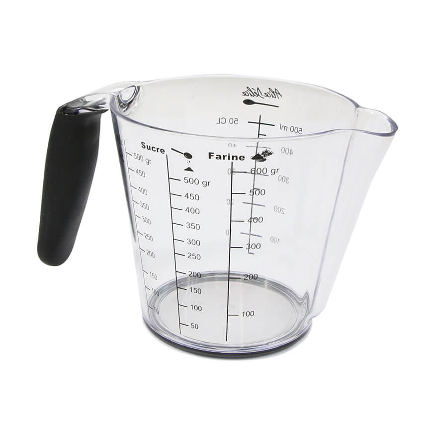 Verre doseur en plastique transparent 500 ml avec poignée et